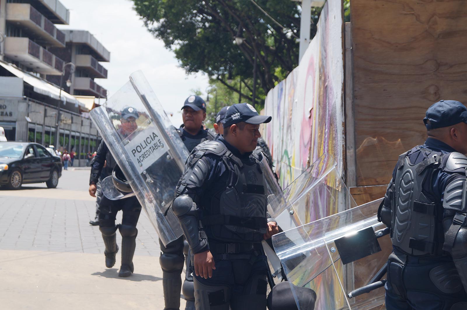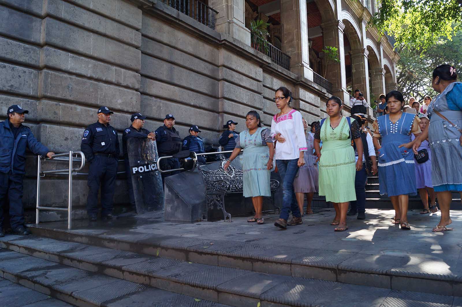 Desde las primeras horas de este miércoles, elementos del Mando Único y Antimotines se colocaron al rededor del zócalo de Cuernavaca para impedir que las comerciantes indígenas y ambulantes en general, colocaran sus puestos sobre la calle Gutenberg, Jardín Juárez y frente al Palacio de Cortés.