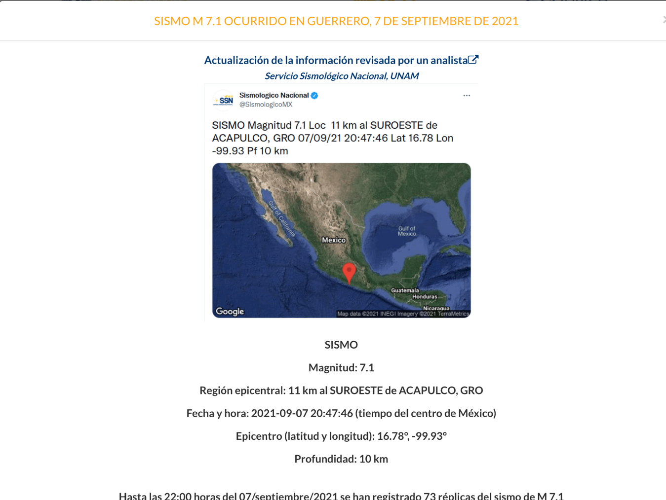 Se registró a las 20:47 fuerte sismo con magnitud 7.1 a 11 kilómetros de Acapulco.
