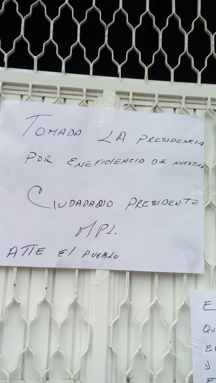 Me informan nuestros hermanos del municipio de Tepalcatepec que, en vista de la ineficiencia manifiesta del presidente municipal Aurelio Arreguín Madriz, a partir de hoy han decidido tomar las oficinas de palacio municipal, cerrado desde las dos de la tarde.