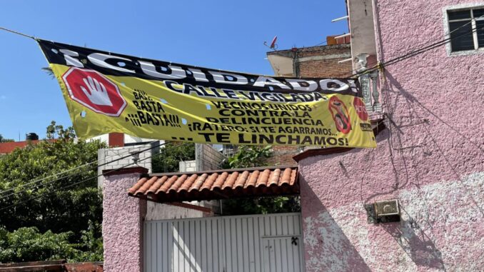 En la colonia Lomas de San Antón ante el incremento de asalto a mano armada y robo de vehículos, así como de autopartes por la falta de alumbrado público y vigilancia colocaron letreros en los que advierten a los delincuentes con lincharlos en caso de que sigan con sus ilícitos.