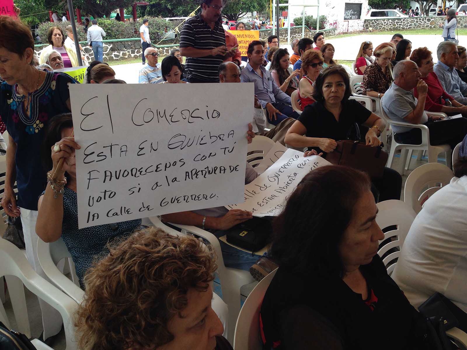 Tras la exigencia de un grupo de comerciantes del centro Histórico de Cuernavaca, el alcalde de esta ciudad, Cuauhtémoc Blanco Bravo, se comprometió a establecer una mesa de trabajo con ellos para analizar la apertura de la calle Guerrero, la cual forma parte del proyecto de Ecozona del gobierno del estado de Morelos.