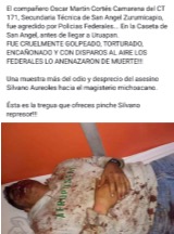 COMO RESPUESTA A LA “BUENA VOLUNTAD” DEL GOBIERNO ESTATAL PARA LLEGAR A ACUERDOS EN LA MESA INSTALADA, GOLPEAN SALVAJEMENTE Y MANDAN AL HOSPITAL DEL ISSSTE EN URUAPAN AL MAESTRO OSCAR MARTIN CORTÉS CAMARENA, SEGÚN EL BOLETIN QUE NOS ENVIARON FUENTES CONFIABLES Y QUE TAMBIEN CIRCULA EN REDES:
