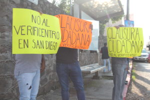 Sin embargo no fue así, por lo que este día, un aproximado de 50 personas -entre niños, jóvenes y adultos- salieron a manifestarse y hacer una clausura ciudadana del Verificentro.