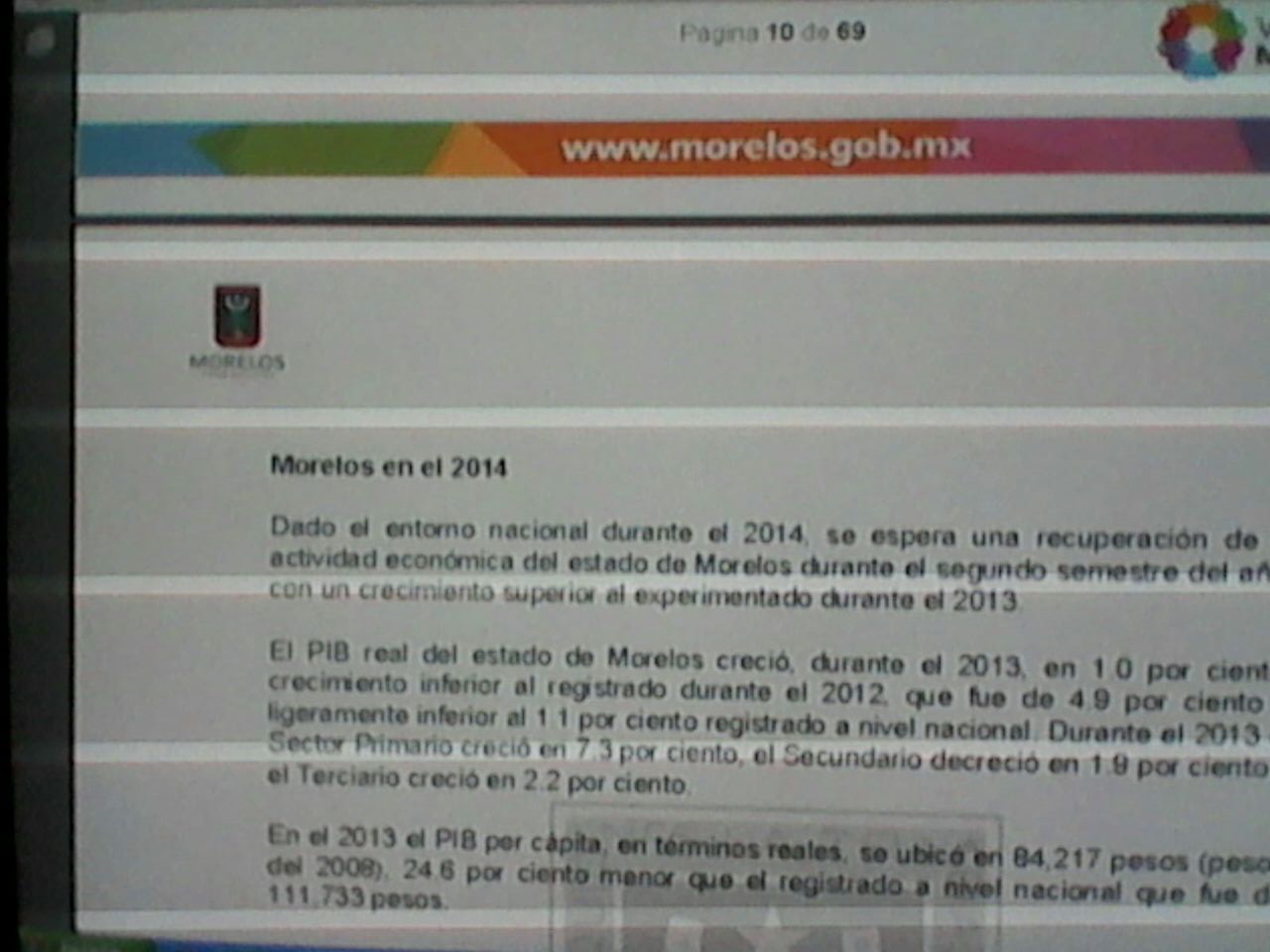 Destaca que el mismo Graco acepte que del año 2012, con un gobierno panista, para el siguiente año 2013, con un gobierno perredista, el crecimiento económico de Morelos se desplomó de un 4.9 por ciento anual a 1.0 por ciento: Morelos creció, durante 2013, en 1.0 por ciento, crecimiento inferior al registrado durante el 2012, que fue de 4.9 por ciento…”. Aunque desde noviembre del 2013, hace más de un año, advertíamos el débil desempeño económico de Morelos, explicado en buena medida por errores de política pública estatal http://goo.gl/yQYg4X. Al igual que lo hizo el Dr. Tamayo http://goo.gl/gqQ6sW