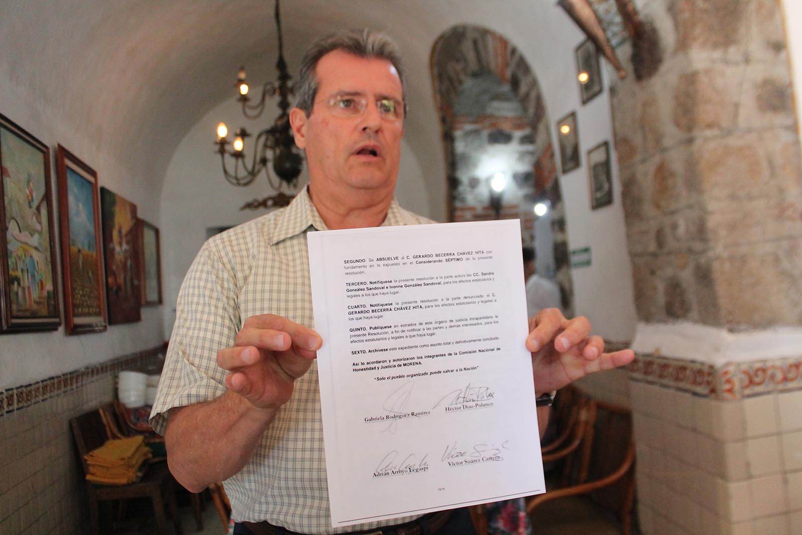 Lo anterior, luego de que el martes un grupo de abogados, quienes dijeron ser militantes de Morena, solicitaron a Yeidckol Polevnsky, presidenta del partido, que descartara a Gerardo Becerra como su candidato a la alcaldía de Cuernavaca, toda vez que cuenta con seis carpetas de investigación por el delito de fraude en los juzgados primero y tercero penal, así como en el juzgado sexto civil en materia familiar y de asociaciones en Cuernavaca, además de una demanda en el juzgado civil del municipio de Cuernavaca.