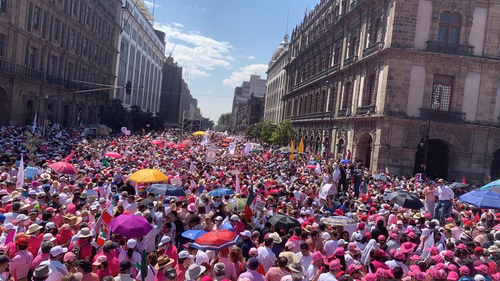 Familias caminando sobre el Paseo de la Reforma.La icónica Esquina de la Información.El infaltable vendedor ambulante.La Alameda.Hemiciclo a Juárez.Gente rumbo al Zócalo.Panfletos.Esperando para incorporarse a la marcha.Gente que no pudo ingresar al Zócalo.