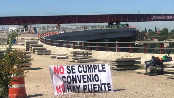Lo anterior lo mencionó porque la construcción del puente está detenida desde el miércoles por un grupo de ejidatarios de Chipitlán, quienes exigen el pago de los terrenos que ocupa esta interminable obra, pero señaló que la parte donde están frenando los trabajos es un área que donó «Casas Geo» en la que ya no tienen autoridad.