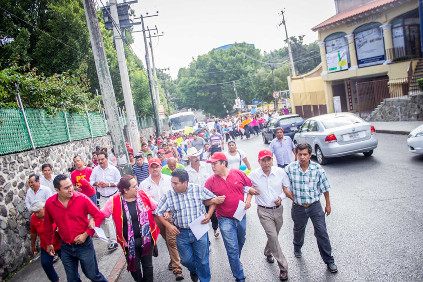 En el marco de la segunda jornada nacional de movilizaciones del Partido del Trabajo en contra de las arbitrariedades y el desaseo cometido por el Instituto Nacional Electoral (INE), cientos de militantes del PT Morelos hacen lo propio al manifestarse a las afueras del órgano electoral y denunciar que desde el 7 de junio la citada dependencia emprendió una serie de acciones con el objetivo de quitarle el registro al único partido político que se mantuvo en contra de las reformas estructurales que buscan culminar con la privatización del agua y de los servicios de salud.