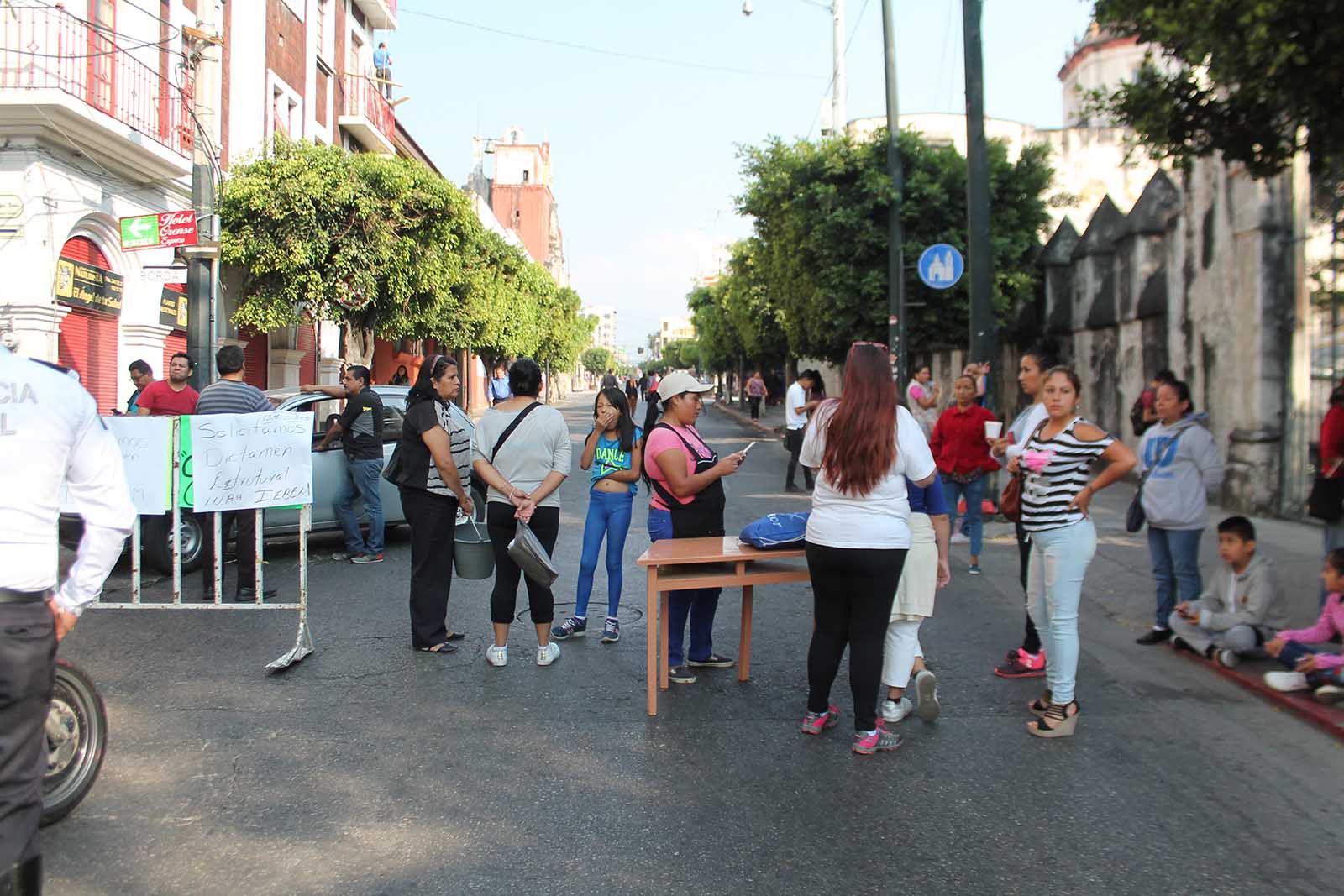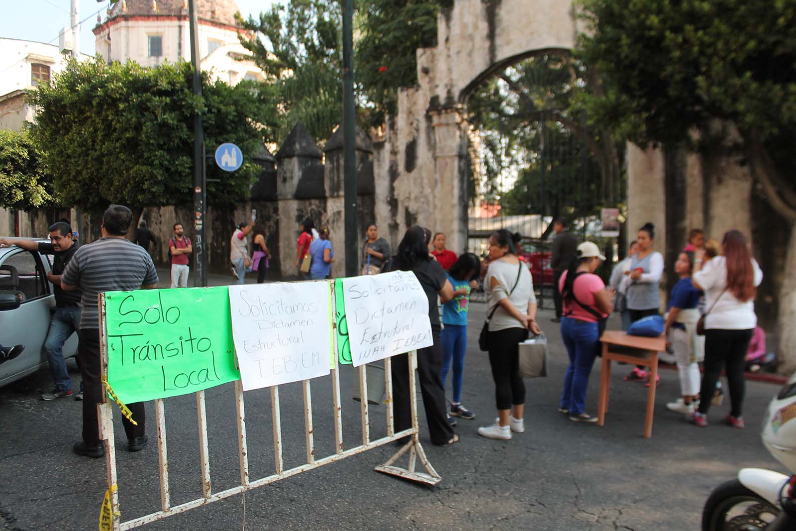 Más de tres horas, padres de familia de la escuela Primaria «Benito Juárez» mantuvieron bloqueada la calle Hidalgo y la Avenida Morelos para exigirle a las autoridades un dictamen de esta institución educativa así como de la catedral de Cuernavaca.