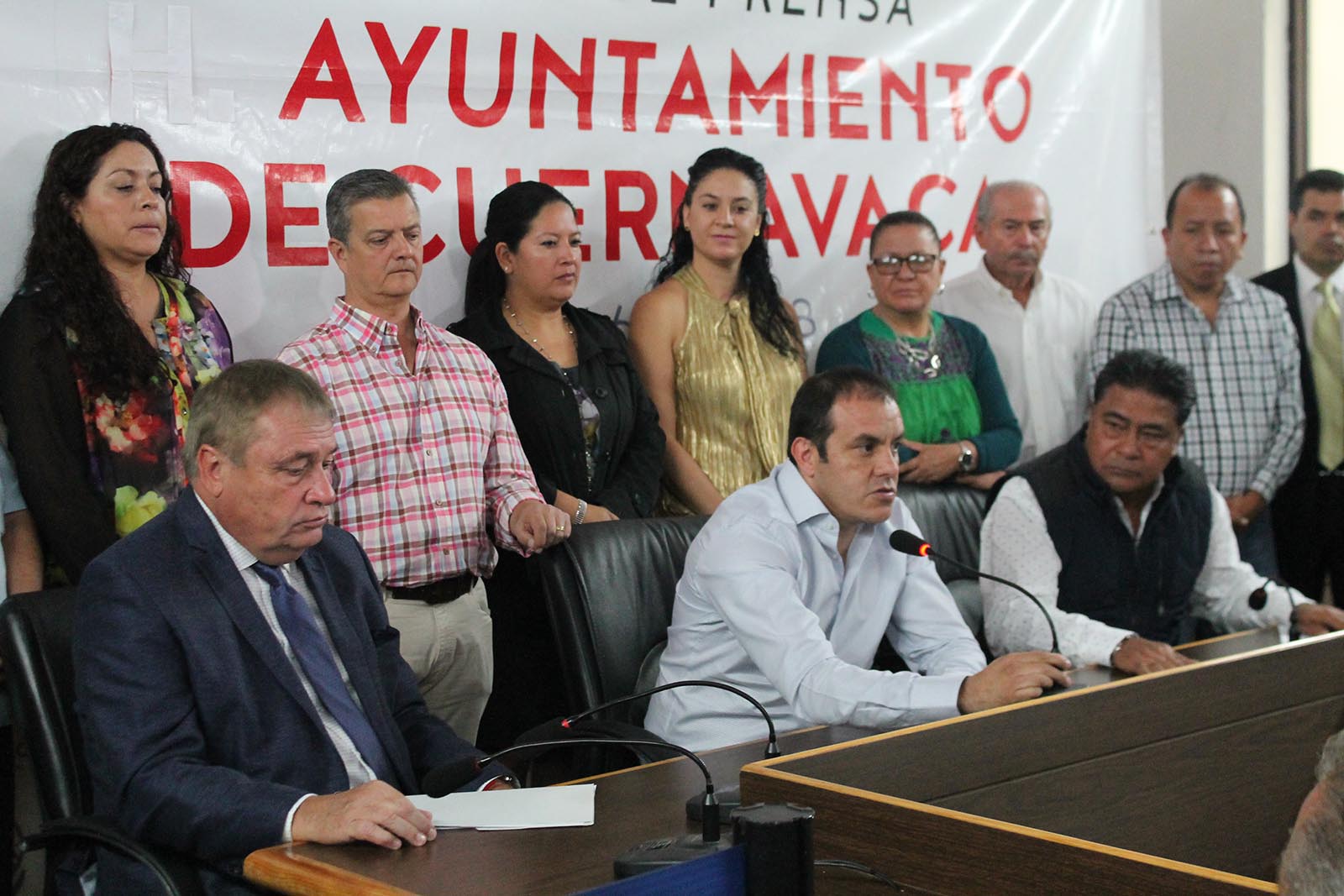 Minutos antes del medio día, Cuauhtémoc acompañado de su gabinete ofreció una rueda de prensa en la que dio a conocer que los regidores, diputados locales y Rodrigo Gayosso -hijastro de Graco Ramírez- presentarían en el Congreso del Estado una solicitud de juicio político en su contra, desconociendo el motivo por el cual se presentaría.