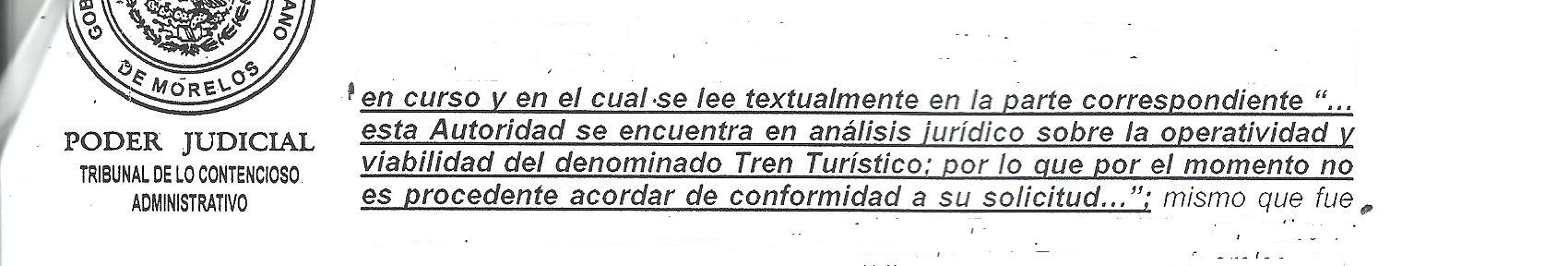 No existía una razón puntual para negarme los permisos: había cumplido con cada uno de los requerimientos exigidos por la ley, entonces, simplemente me dieron largas “se encuentra en análisis” Sin embargo, más de un año después de que la Secretaría de Movilidad paró el Tren Turístico, el día 20 de junio del 2014, el Magistrado Martín Jasso Díaz se pronunció respecto a la repuesta negativa brindada por la Secretaría de Movilidad.  Expediente TCA /1°S/132/2013,