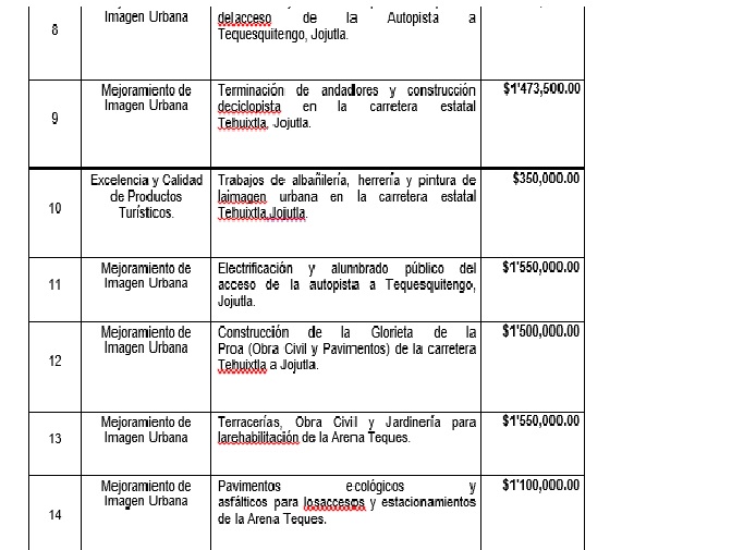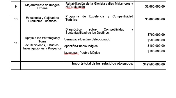 2.- El Gobierno del Estado de Morelos había presentado una lista de obras de acuerdo a las necesidades del sector Turismo. Estas son algunas de ellas: