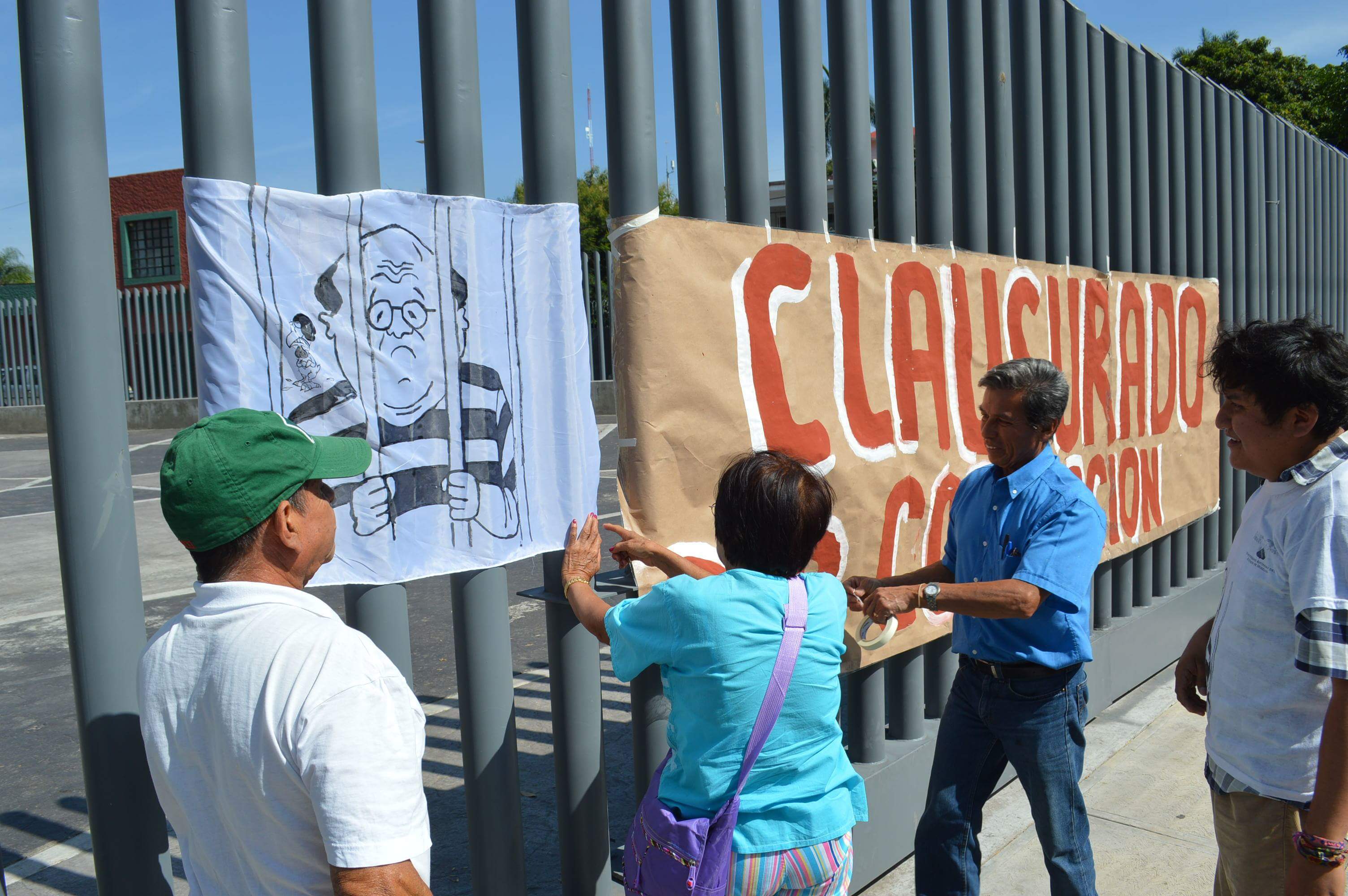 El contingente fue encabezado por cuatro personas: dos estaban caracterizados de Graco Ramírez y su esposa Elena Cepeda, y el otro par sujetaban una especie de barras de metal, haciendo referencia a que deberían estar en prisión por saquear a la entidad morelense. Además de ello, llevaban una letrero con la leyenda de «clausura», el cual pegaron en el acceso principal de este congreso para clausurarlo simbólicamente.