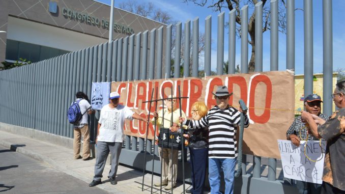 Gabriel Rivas, vocero de la asociación, señaló que con esta protesta exigen a los diputados echar atrás las jubilaciones y reformas aprobadas a capricho del gobernador Graco Ramírez, pues refirió que de esta manera se buscan proteger una vez que termine el tiempo de sus funciones.
