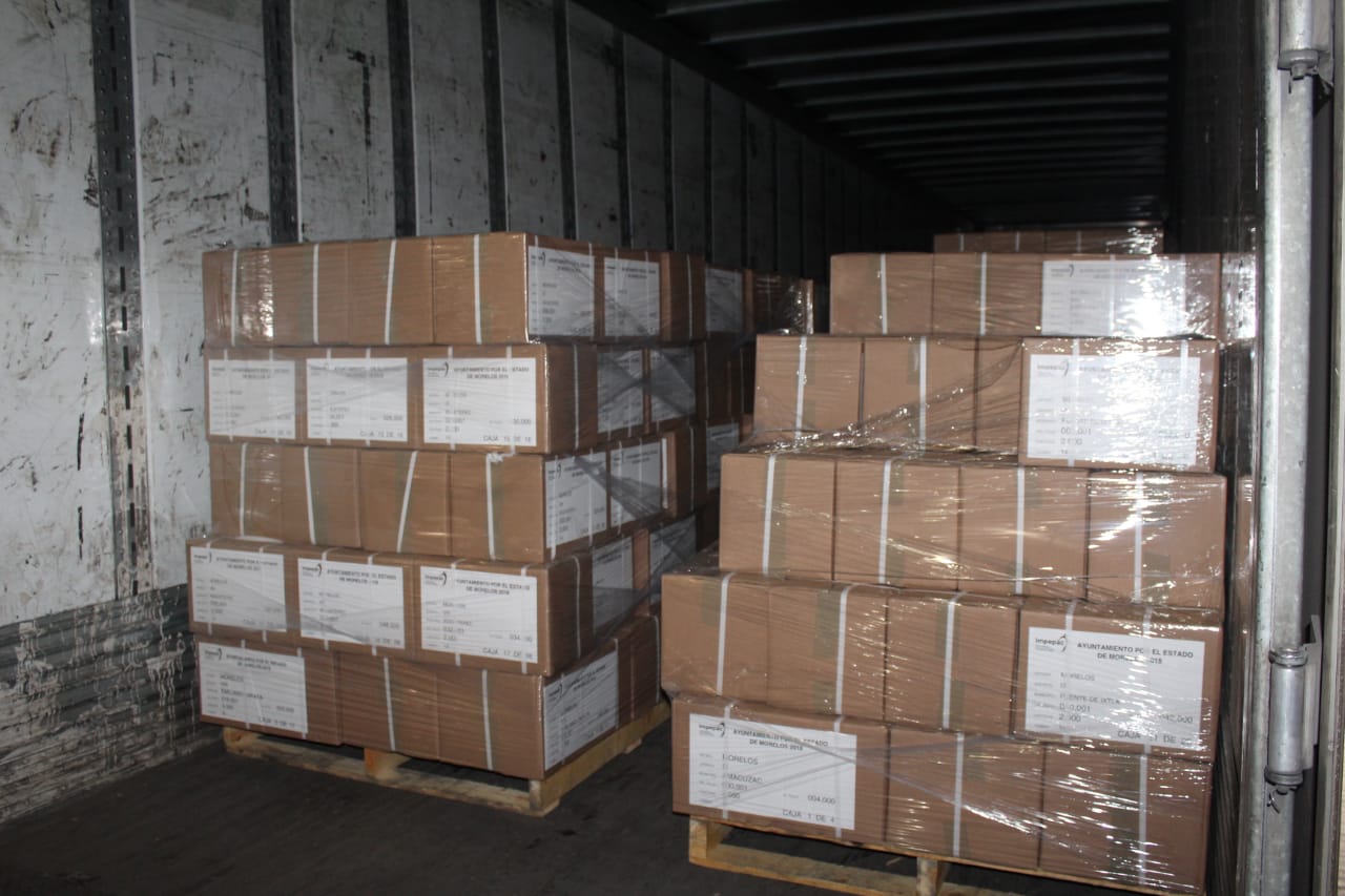 Custodiados por consejeros electorales, representantes de partidos políticos, así como la Policía Federal y la Policía Estatal, la madrugada de este viernes arribaron al estado de Morelos alrededor de 23.5 toneladas de boletas y material electoral en dos camiones provenientes de Talleres Gráficos de México (TGM), ubicados en la Ciudad de México.