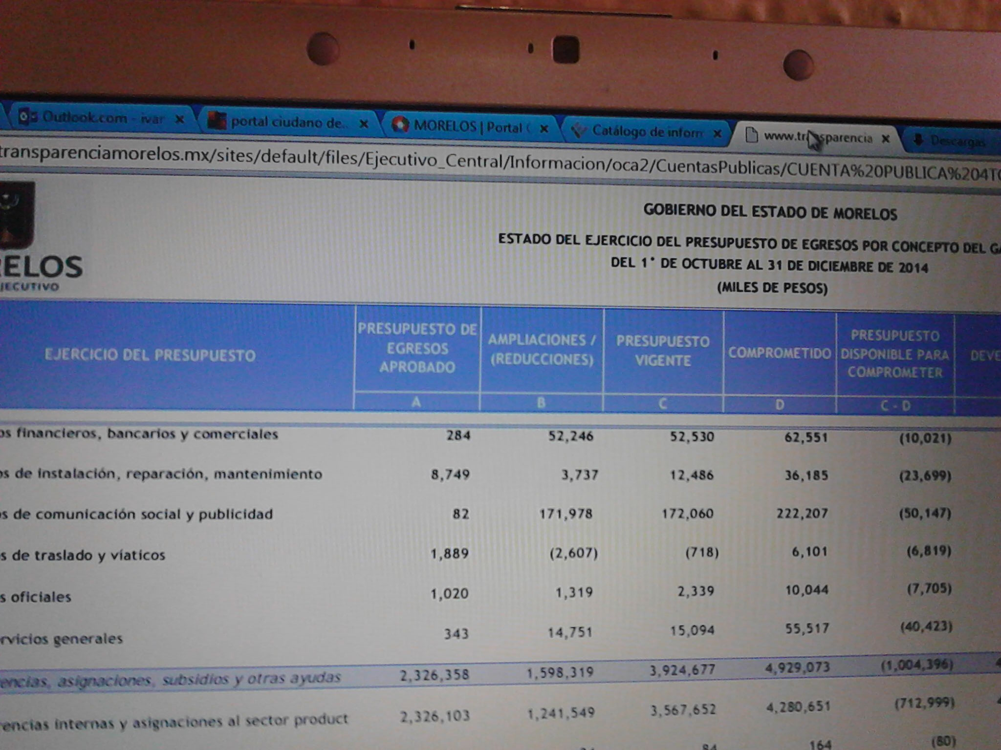 En el lapso octubre-diciembre del 2014, el gobierno de Morelos gastó en Comunicación  Social y Publicidad, la exorbitante cantidad de 222 millones de pesos. Aunque cuando inició el último trimestre de ese año, el dinero disponible era de únicamente 82 mil pesos, pero en el mayor de los sigilos, las autoridades lo incrementaron para ubicarlo en la abundante cantidad de 172 millones de pesos, pero ni siquiera ese estratosférico aumento les resultó suficiente y ejercieron adicionalmente 50 millones de pesos, para comprometer en ese solo período 222 millones 207 mil pesos.