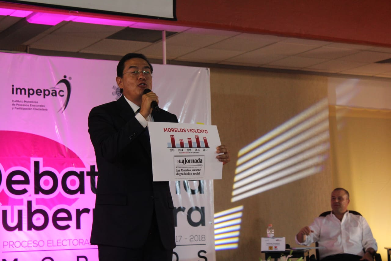 Luego de la primer ronda, los candidatos al gobierno de Morelos comenzaron a mostrar estadísticas de inseguridad, pobreza, desempleo, y corrupción. Tal fue el caso del ex futbolista, quien en repetidas ocasiones acusó a Graco Ramírez de colocar a Morelos en los primero lugares de los aspectos mencionados, y lamentó que en los seis años de su gobierno únicamente se encargó de saquear y endeudar a la entidad.