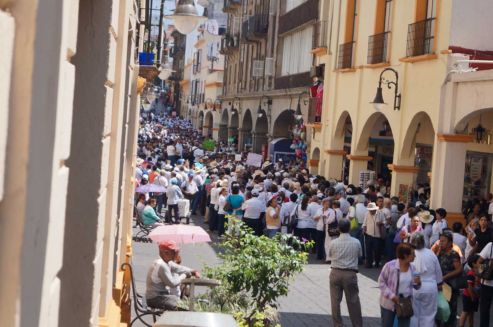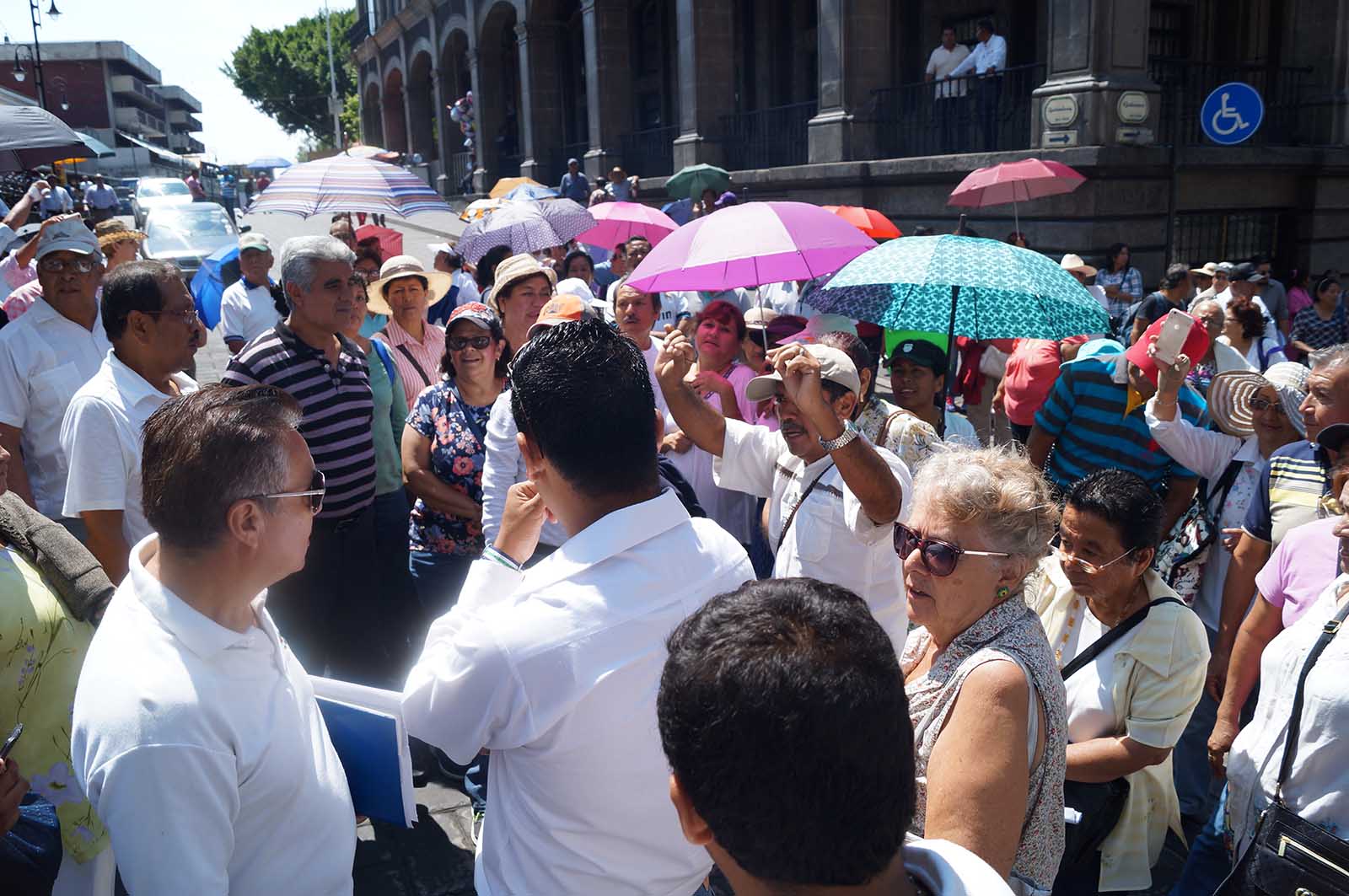 Cerca de las 10:00 horas de este jueves, los docentes jubilados comenzaron a reunirse en el Jardín Juárez a un costado de Casa Morelos -tal como lo habían hecho a lo largo de esta semana- portando cartulinas y lonas con frases como: «#GracoNoPagaAJubilados», «Graco, los jubilados y pensionados no somos tus aliados», «Gobernador, exigimos respeto a nuestras prestaciones», entre otras.