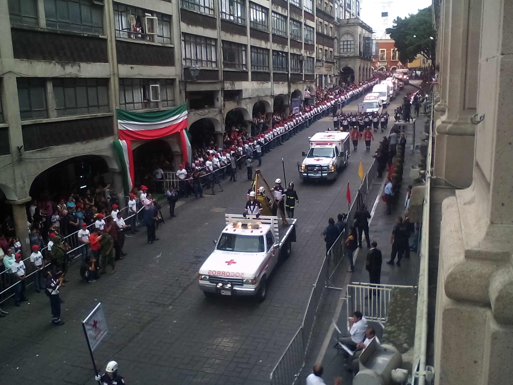 Mientras que en el contingente de las autoridades estatales, municipales y cuerpos de emergencia presentaron 3 banderas, 10 guiones; 848 uniformados, destacando 77 del Cuerpo de Bomberos, 118 de la Cruz Roja, 237 del Pentatlón y el resto de policías del Mando Único.