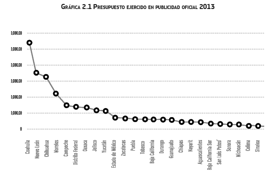 .Según un estudio de FUNDAR A.C. Morelos incrementó su gasto en publicidad 173% del 2012 al 2013, colocándose así en el cuarto lugar a nivel nacional.