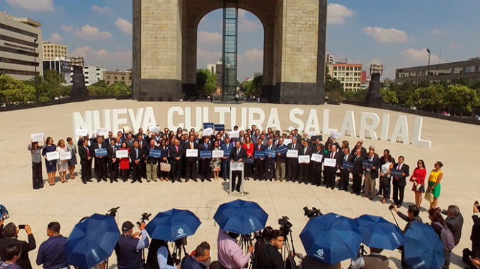 Los patrones, organizados en la COPARMEX, en junio del 2017 salieron a las calles para solicitar un incremento del mínimo de al menos a 92.72 pesos. La foto es más que elocuente.